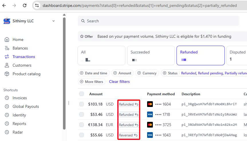 استرداد المبلغ للعملاء عبر Stripe